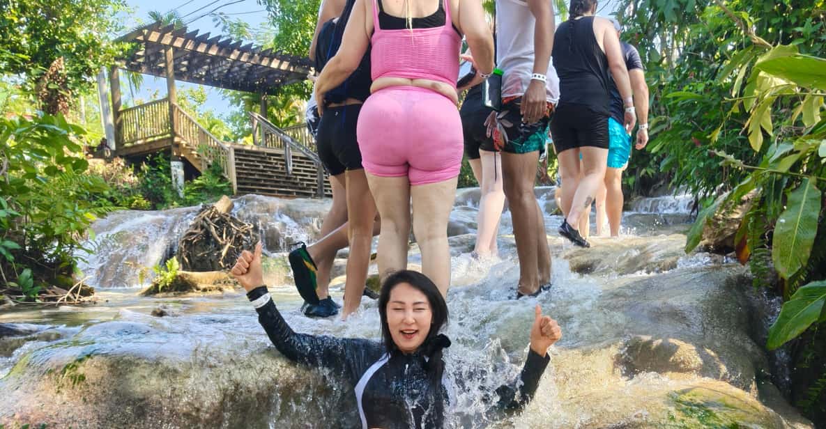 Island tour, Bamboo beach , Dunns river fall in Ocho Rio, Jamaica I would like to say that this excursion was offered on the Carnival Ship for 69.99 and I must say it was well worth it. Sasha was our guide person and she was awesome ,very fun, and organized. Sasha and her crew catered to my group and I to the fullest especially at the Bamboo beach. The food and drinks were superb!! The river fall climbing was also fun and great experience. I highly recommend this excursion to anyone who’s looking for something fun to do.